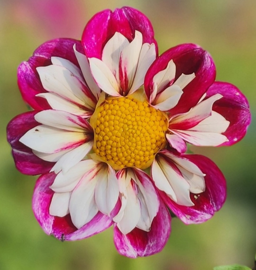 Bumble Rumble is a joyful, high impact dahlia that brings instant fun to the garden. Its bright golden yellow petals are streaked and splashed with vibrant raspberry red, creating a lively bicolor pattern that makes every bloom feel like a tiny firework. No two flowers are exactly alike—each one shows off its own unique blend of stripes, speckles, and bold color swirls.